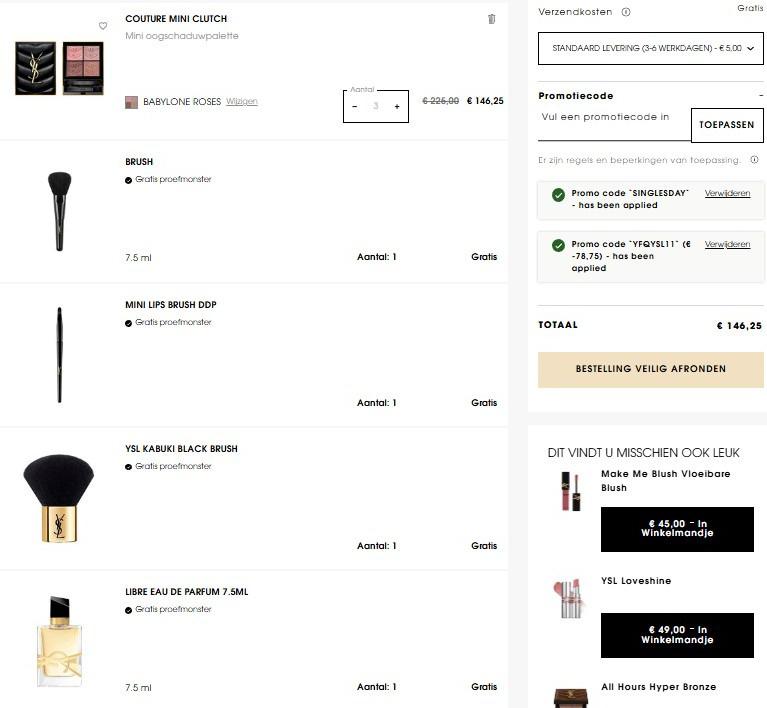 👉 独家满70€送3支化妆刷套组!赠礼码:YFQYSL11